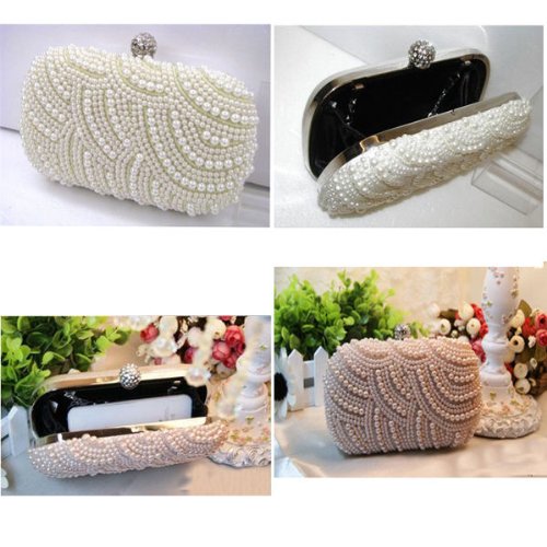 Evening Bag Women Pearl Clutch Gorgeous Bridal Bag Beige Champange Two Chains