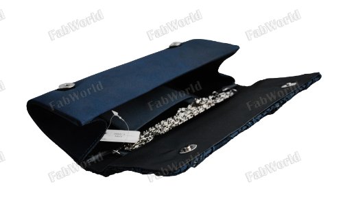 Girly HandBags Purple Lace Clutch Bag Floral Flower Satin Aubergine Plum Orchid Indigo Evening (Navy)