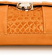 High grade faux-leather bag with gold trim and beautiful coral colour poly-cotton lining with branded trim