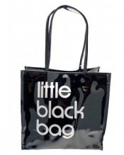 Has ‘Little Black Bag’ written on the front and back and sides of the bag