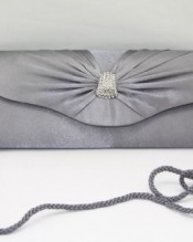 NEW LADIES SATIN EVENING WEDDING PROM PARTY CLUTCH BAG 07 Grey