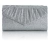 New Look Ladies Handbags Black Silver Blue Brown Fuschia Glitter Evening Shoulder Chain Clutch Bag Large Womens Sparkle Evening Metallic Prom Handbag (SILVER)