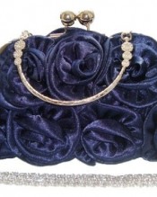 New Satin Silk Rose Evening Wedding Party Handbag party Bridal (NAVY BLUE)