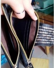 Three fold design,this women wallet is pretty cool and fashionable with several rows of rivet paved.