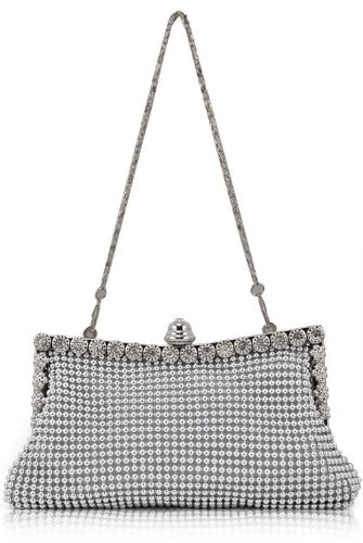 Outdoortips Silver Sparkly Diamante Crystal Satin Evening Wedding Clutch Purse Bag