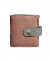COLOUR BLOCKED CLUTCH BAG IN SALMON PINK WITH FLAP IN CONTRAST DUSTY BLUE/GREY COLOUR PU.