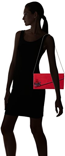 This gorgeous Ruby Shoo Evette red suede clutch bag is both a stylish and sophisticated accessory for any occasion. There is a fold over flap and concealed magnetic clasp. This bag is beautifully finished off with a three flowers on the front. Perfect match for the Ruby Shoo Ashley shoes.