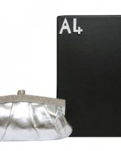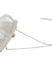 Silver clutch bag with diamante panel and large round diamante clasp to close