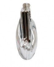 Good quality clutch handbag with softly pleated body and a strip of diamante trim across the top of the front of the bag. The bag closes with a large round silver coloured diamante clasp which has a large diamante in the centre. The back of the bag is plain. It comes with an optional long shoulder chain.