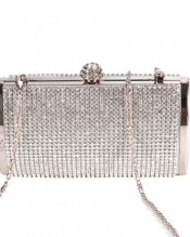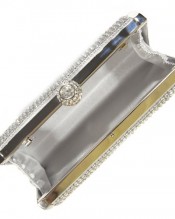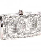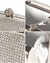 Silver Crystal Diamante Effect Evening Clutch Wedding Purse Party Prom Bag Box