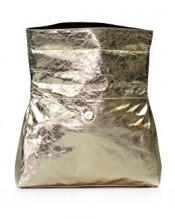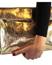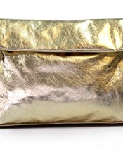 Stunning Metallic Designer Soft Leather Roll Top Clutch Bag – Gold – Grey (Metallic Gold)