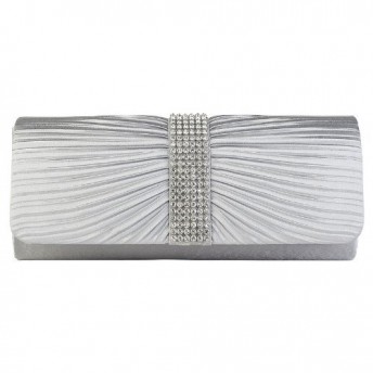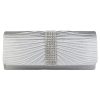 Womens Silver Satin Diamante Ladies Pleated Bow Wedding Bridal Prom Handbag Clutch Bag