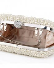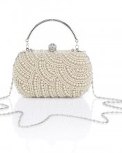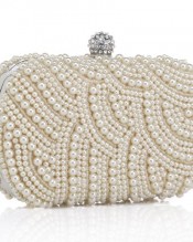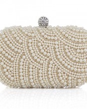 Yafex Women Girls Charming Faux Pearl Beaded Evening Christmas Party Clutch Bag GZ247 (Beige)
