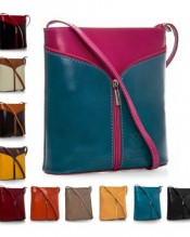 Big Handbag Shop Womens Mini Genuine Italian Leather Cross-Body Bag (V120 Teal – Tan)