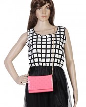 The popular fabulous bifold shoulder bag is made of patent leather with all-over rivets in front cover and a magnetic snap closure. It’s bright surface and supple handfeel makes the bag more royal.Interiror features 6 credit card slots and a full length interlayer for your important receipt or tickets .The detachable golden chain (about 108 cm) supplies versatile carrying options as a hand held clutch, handbag, shoulder bag, or messenger bag.The main compartment offers just enough room for your daily items such as cellphone ,comestics,and facial tissue. Purse measurement approximately: Length 19cm(7.4inches) X Height 13cm(5.1 inches) X Width 5.5cm(2.1 inch).
