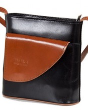 Leather Shoulder Bag – small evening bag made in Italy (18x19x6,5 cm), Colour:Black / Brown