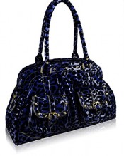 Blue Black Animal Print Shoulder bag Patent & Velour
