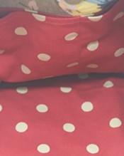 Cotton Messenger Bag with adjustable shoulder strap, red spot lining and a branded woven label. There is a magnetic closure and inside and outside pockets. Bag dimensions are length 30cm, width 10cm and height 39cm. Genuine Cath Kidston. Brand new with tag.