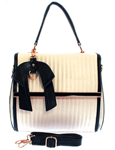 Girly HandBags Quilted Faux Leather Shoulder Bag Handbag Monochrome Grab Holder Elegant Women Fashion Bow (Beige Black)