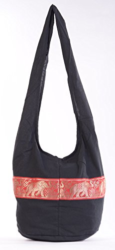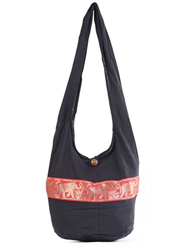 Hippie Sling Bag | Elephant Thai Shoulder Bag | Hippie Clothing | Hippy Clothes for women | Festival clothing | Festival essential | rave clothing | rave wear | Bohemian Bag | Boho Fashion (Black)