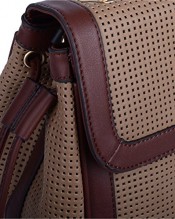 Faux Leather, HWD: 24 x 30 x 14 cm (excluding handles), Full zip closure under front flap, Detachable, adjustable shoulder strap Classy small open work pattern, single chain detail carry handle, Gold coloured hardware detail, Contrasting lining 1 storage compartment with internal zipped divider, 1 internal pockets with zip fastening 1 internal mobile phone pocket, 1 additional internal pockets