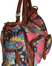 Tapestry and Faux Leather effect, HWD: 25 x 32 x 11 cm (excluding handles) Full zip closure, Detachable, adjustable shoulder strap, Double carry handles, Antique gold coloured hardware detail, Multi-coloured Tapestry design, 2 zipped pockets on front 1 large storage compartment with internal zipped divider, 1 internal zipped compartment 2 additional internal pockets, Zipped pocket on back,