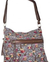 New Ladies Womens Canvas Oilcloth Faux Leather Crossbody Shoulder Bag Handbag Girls Large School Bag Owl Butterfly PolkaDot Horse Dragonfly Design HB-2478 (Canvas Owl Grey)
