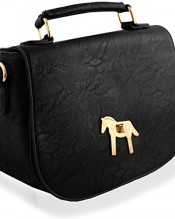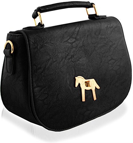 Yufashion Ladies Designer Faux Leather Boutique Totes Handbag with Gold plated steel horse plate – BLACK