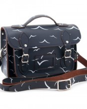 10.5″ Small Leather Satchel Bag In Blue With Birds By Yoshi . Small Satchels