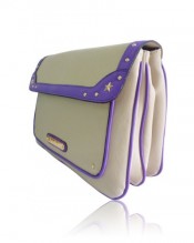 This gorgeous beige and purple handbag with gold trim won’t just look fabulous, it’ll help you keep organised! No more digging around for your mobile or that bit of change – this stylish yet practical handbag features a front slip pouch, a rear zipped pocket, three main compartments (two of which are buttoned) and an internal zipped pocket! With a front flap opening and adjustable shoulder strap, it is the perfect accessory for carrying all your essentials in a neat and orderly manner this spring! Dimensions: H23 x W33 x D11cm