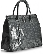 Big Handbag Shop Womens Faux Leather Mock Croc Shiny Gloss Satchel Work Bag (K03T Slate Grey)