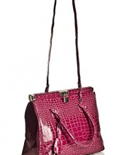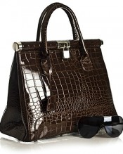 Lightweight mock croc design satchel bag in a gloss finish with silver fittings.