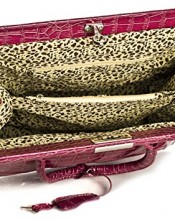 Silver toned turnlock opening and twin carrying handles.