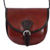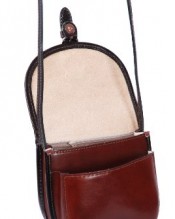 A very small leather satchel style handbag made in Italy in beautiful quality robust smooth leather with a suede lining. The bag has a long adjustable thin leather shoulder strap so the bag can be worn cross body or on the shoulder. There is a buckle o
