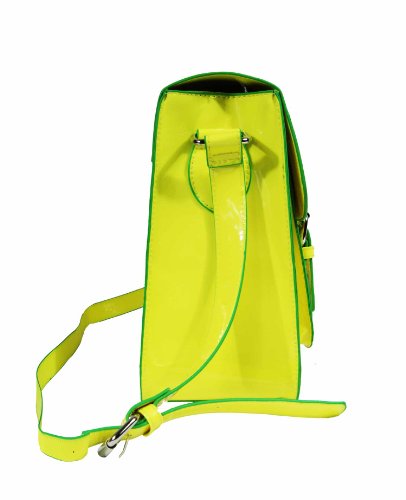 Ladies Womens Satchel Patent Leather Cross Body Bag Classic Retro Bags Bright NEON Q421 (Yellow)