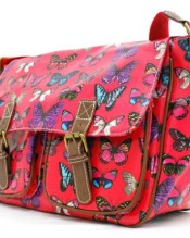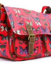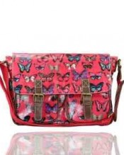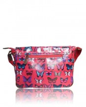 LYDC DESIGNER RETRO VINTAGE Butterfly OILCLOTH LADIES CROSS BODY SATCHEL MESSENGER SHOULDER (RED)
