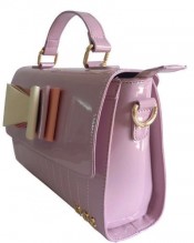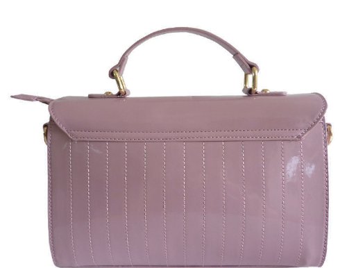 LYDC Womens Faux Patent Leather Glossy Satchel Shoulder Bag Bow Handle Quilted Designer Fashion Elegant Evening Colors (Lavender)