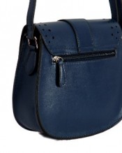 Navy Blue Mini Satchel Saddle Bag Handbag with Cut Out Design on Flap