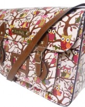 New Anna Smith LYDC Owl Print Saddle Satchel College Oilcloth Patent leather School Retro Vintage Messenger Bag