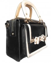 Studded Bow Designer Structured Leather LYDC Womens Hand Bag Satchel Black