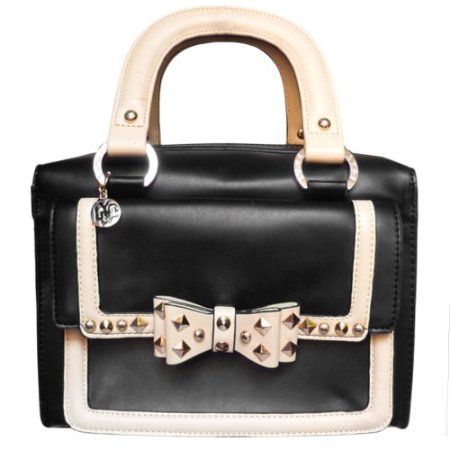 Studded Bow Designer Structured Leather LYDC Womens Hand Bag Satchel Black