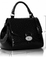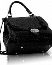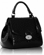 Stylish Womens Celebrity Ostrich Gold Plated Flap & Twist Lock Satchel Bag Black (TI00107A)