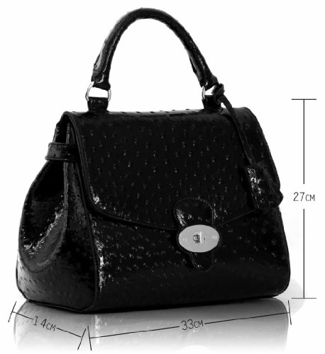 Stylish Womens Celebrity Ostrich Gold Plated Flap & Twist Lock Satchel Bag Black (TI00107A)