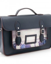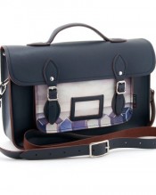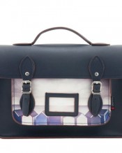 This unique 14″ Belforte Leather Satchel by Yoshi features a printed leather front panel that features a stylised blue beach hut image. The rest of this satchel is finished in a traditional navy blue leather. The inside is unlined to give the satchel a traditional look. This Yoshi satchel features a grab handle on the top and a removable adjustable leather shoulder strap with metal dog clips. There is a slip pocket on the front of the bag and there is a retro ID detail on this pocket. The satchel closes with two push through traditional buckle fasteners. There is a Yoshi fabric label on the front and the bag is supplied in a Yoshi branded Dustbag.