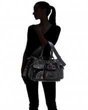 LONDON PRINTED FUR BAG MED Practical multi-pocket bag! Dimensions: 31 * 27 * 11cm. 8 outer pockets, with flap, pockets, welt or open A sort of net pockets on the back and soft hair on the front two pockets 1 zip pocket and 2 patch pockets inside! Is doing both the hand on the shoulder with its adjustable shoulder strap Closes with a zipper on top and features a grill with the letters of the brand in metal Small metal studs underneath to ask without damaging it. COMPOSITION 100% POLYESTER