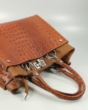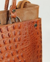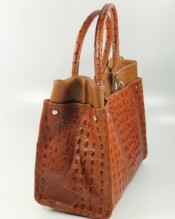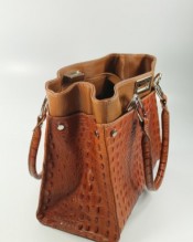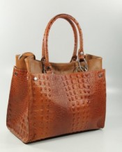 Belli® Womens Italian Genuine Leather Handbag Croco Embossing Brown – 31x25x16 cm (W x H x D)