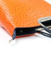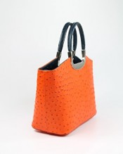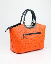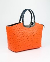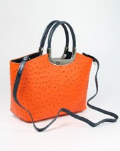 Belli® Womens Italian Genuine Leather Handbag Ostrich Embossing Orange Blue – 26x20x12 cm (W x H x D)