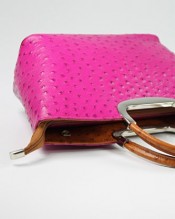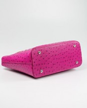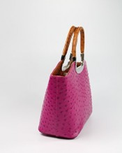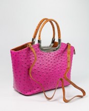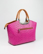 Belli® Womens Italian Genuine Leather Handbag Ostrich Embossing Pink Cognac – 26x20x12 cm (W x H x D)