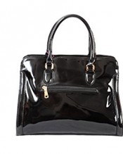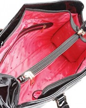 Black Patent Twin Handled Handbag with Chevron Print Top Zip by Claudia Canova