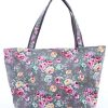 Print: grey roses. Features: with a removable matching wallet, floral print webbed handles, “Florence Happy @ England” logo cotton lining and zip top closure
